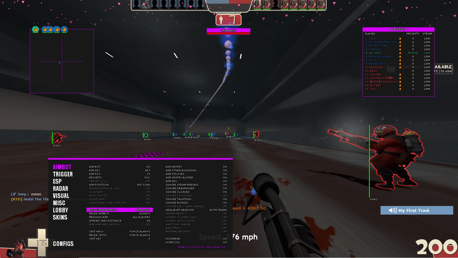 - Customizable Aimbot features, including Invisible Aimbot and Projectile prediction for Bow, Rocket Launcher, and other weapons